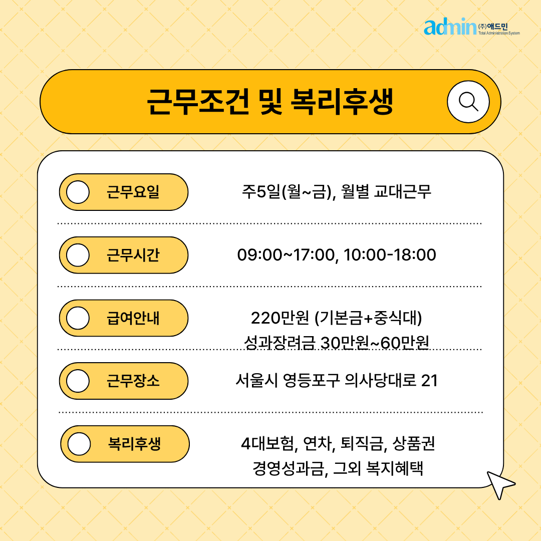 급여안내: 220만원 (기본금+중식대), 성과장려금 30만원~60만원