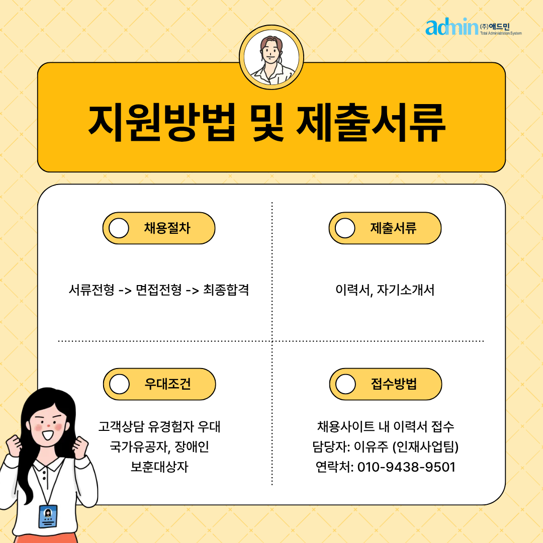 우대조건: 고객상담 유경험자 우대, 국가유공자, 장애인, 보훈대상자