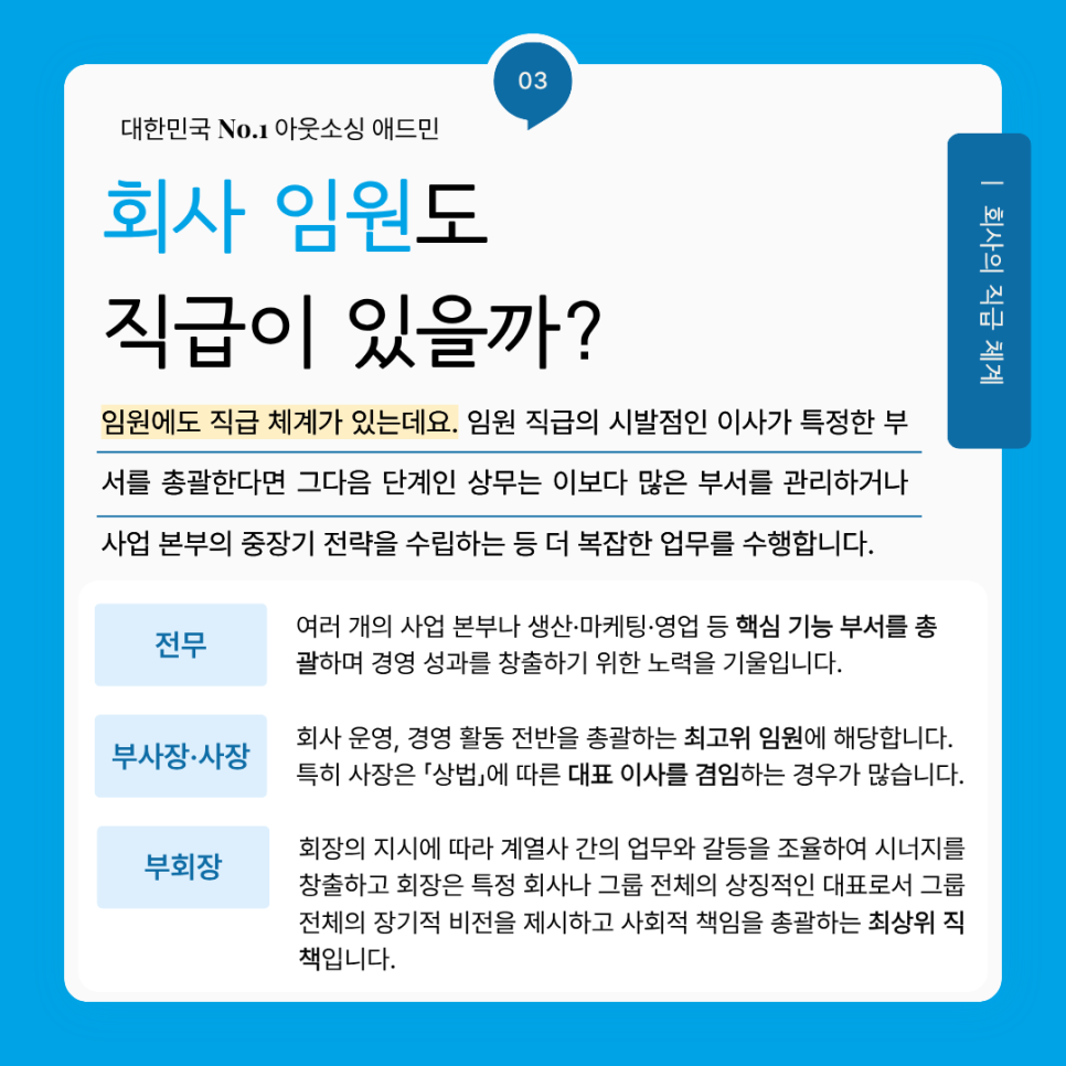 연구직, 생산직, 회사 임원의 직급 체계에 관해서