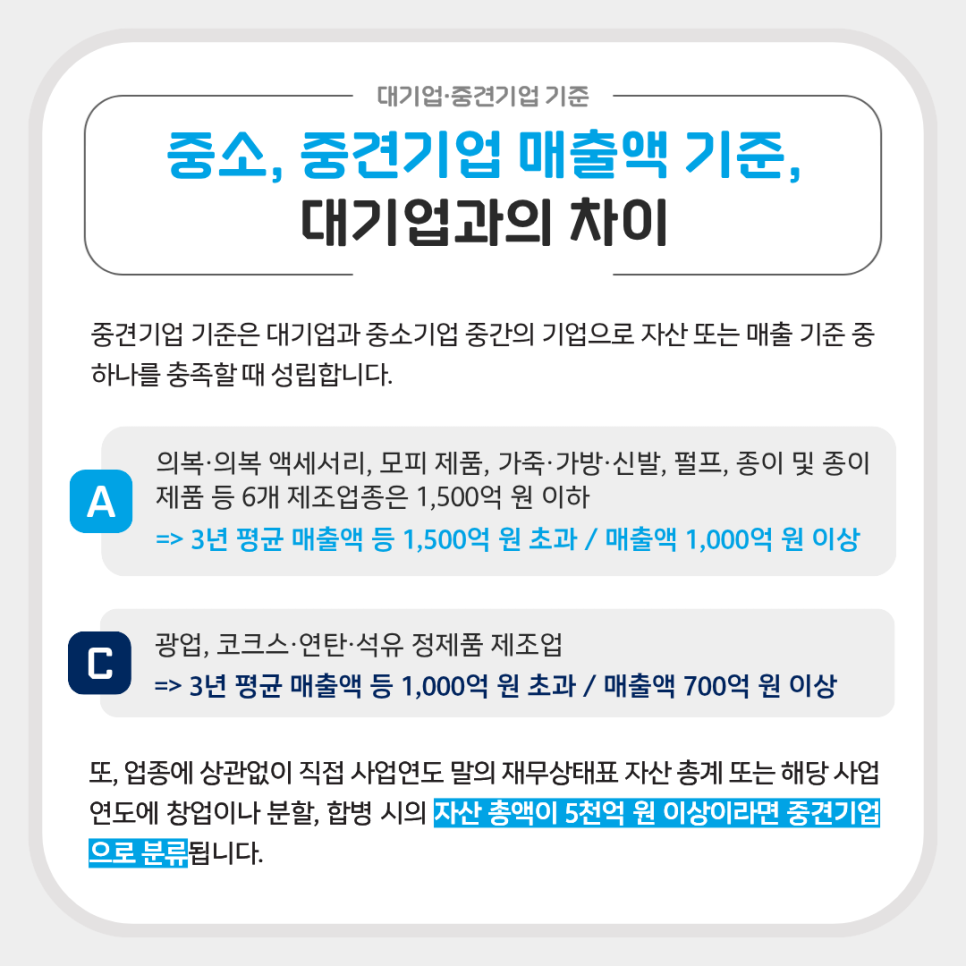 중소, 중견기업 매출액 기준, 대기업과의 차이