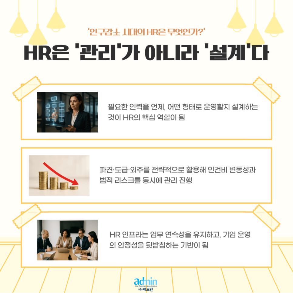 이제 HR은 단순히 인원을 관리하는 기능이 아니라, 인력 구조를 설계하는 전략 영역으로 변화하고 있습니다.