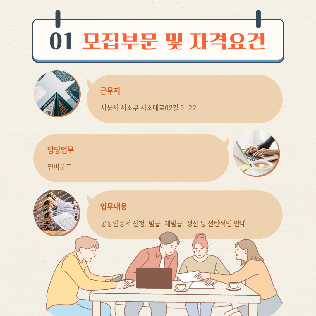 업무내용: 공동인증서 신청, 발급, 재발급, 갱신 등 전반적인 안내