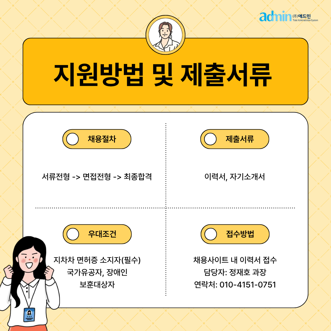 우대조건: 지차차 면허증 소지자(필수), 국가유공자, 장애인, 보훈대상자