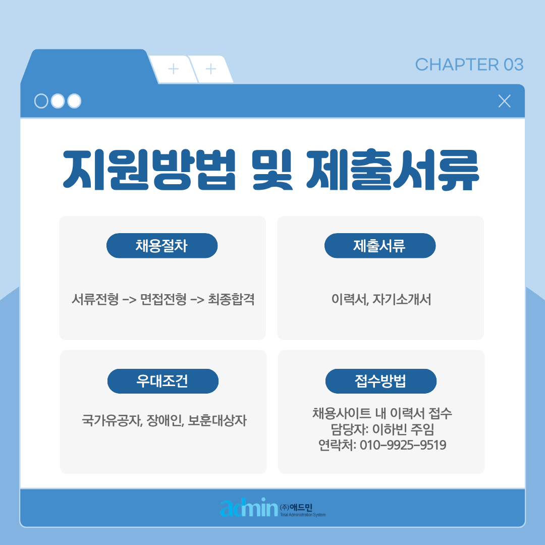 채용절차: 서류전형 > 면접전형 > 최종합격