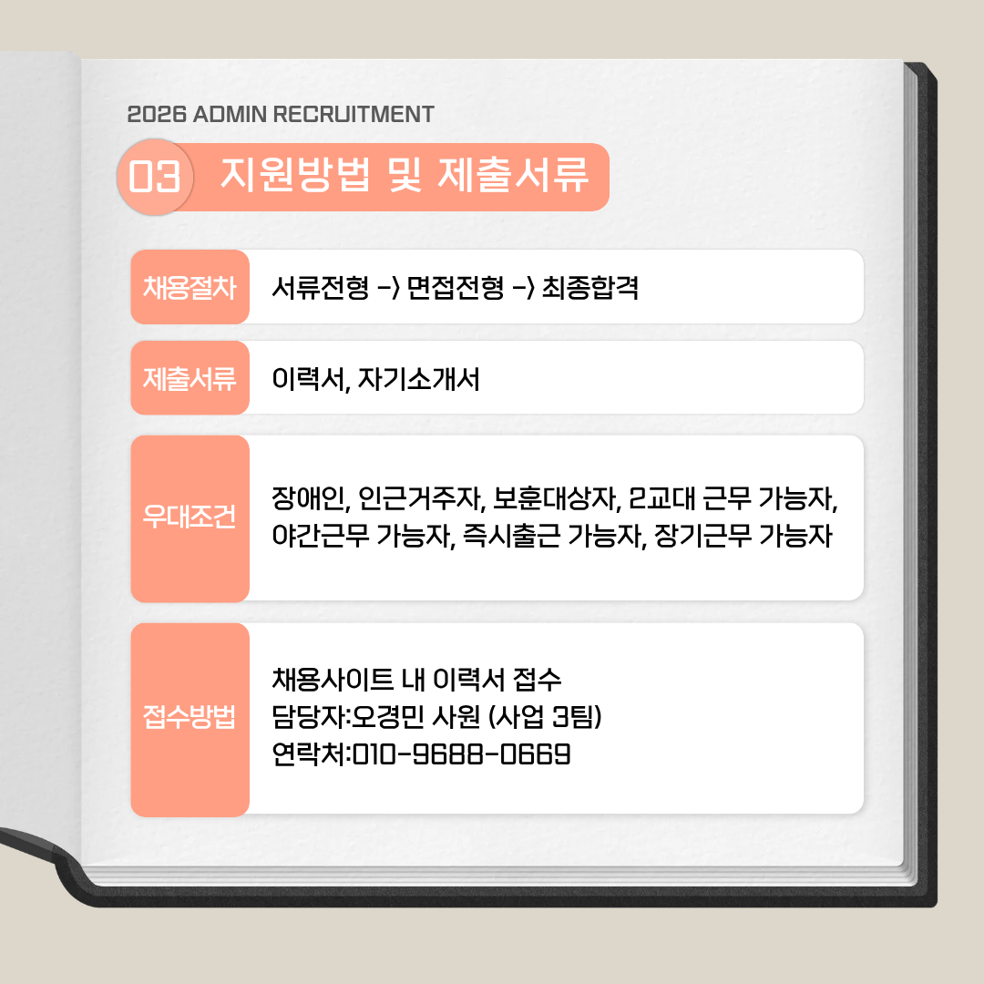 | [애드민.송파]경영지원팀 직원 채용 (3) | 2026.04.06 |