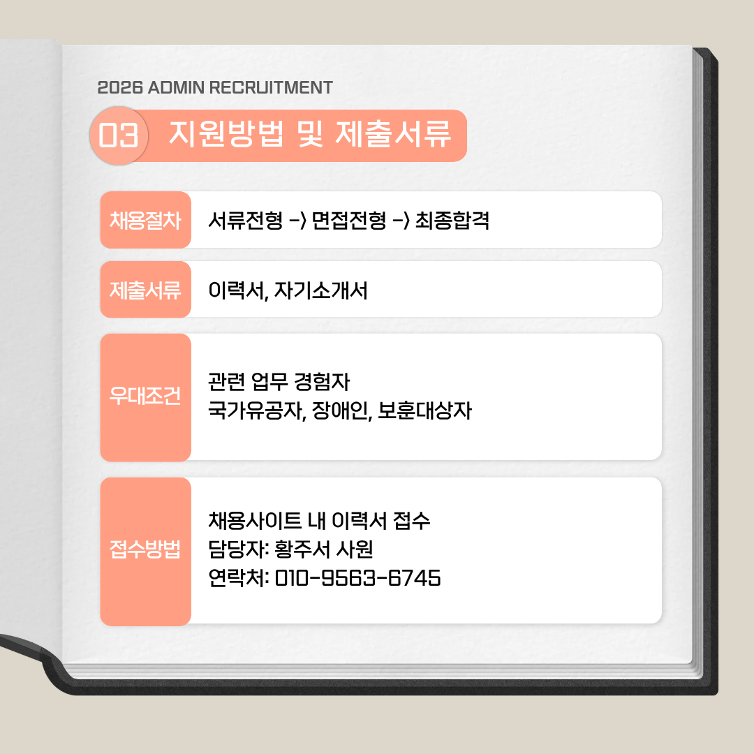 | [애드민.송파]경영지원팀 직원 채용 (3) | 2026.04.06 |